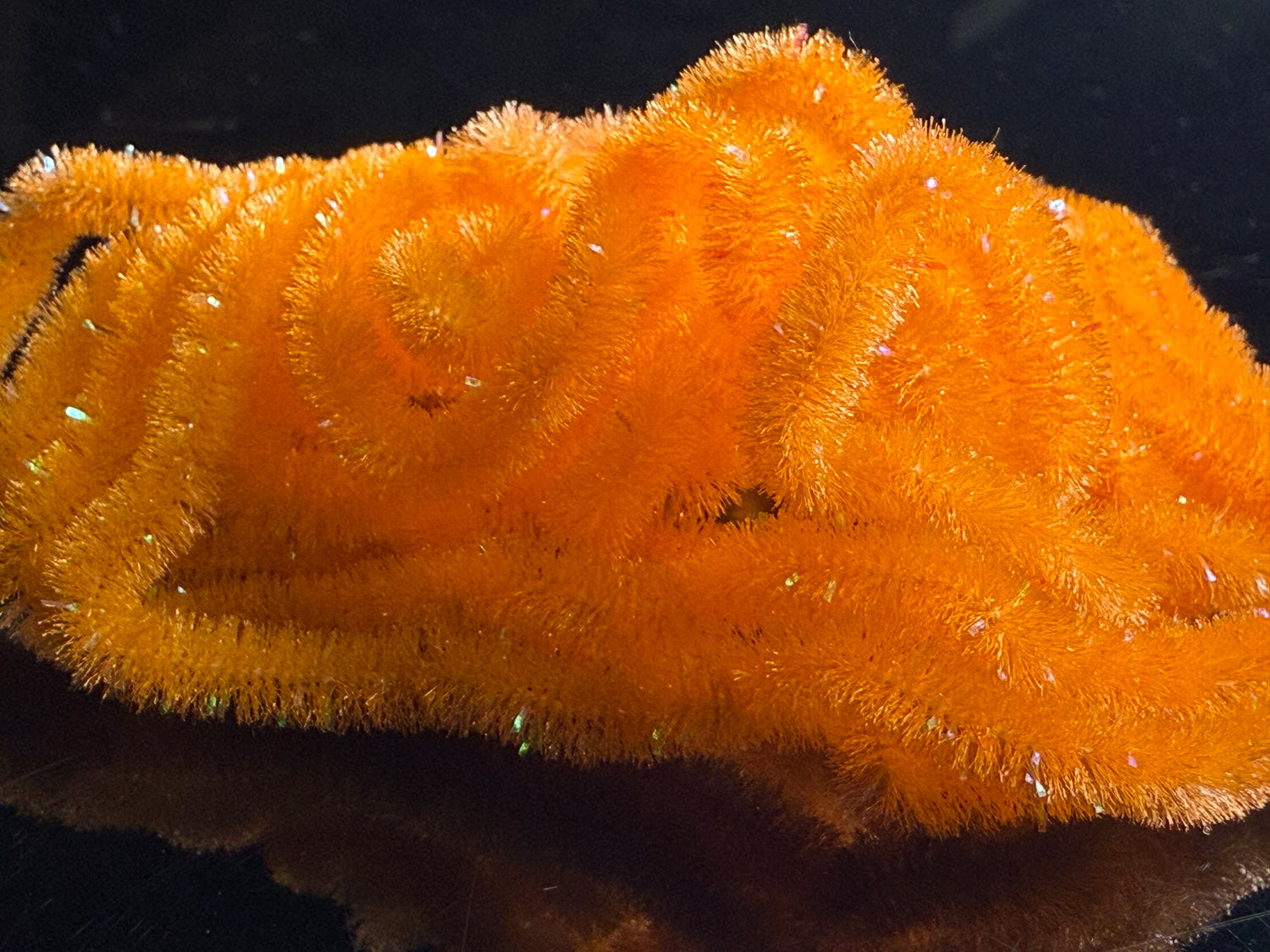 This revolutionary chenille is crafted by blending translucent Tri-Lobal fibers with a touch of Pearlescent Mirror Flash, creating a fly tying material that is set to transform standard chenille use. The Crystal Antron Chenille is highly durable and can be heated to shape into tapered worm patterns and flat-bodied nymphs, offering unparalleled versatility for fly tying. From tying simple egg patterns to crafting Crystal Wooly Buggers, this chenille makes the process easier than ever.