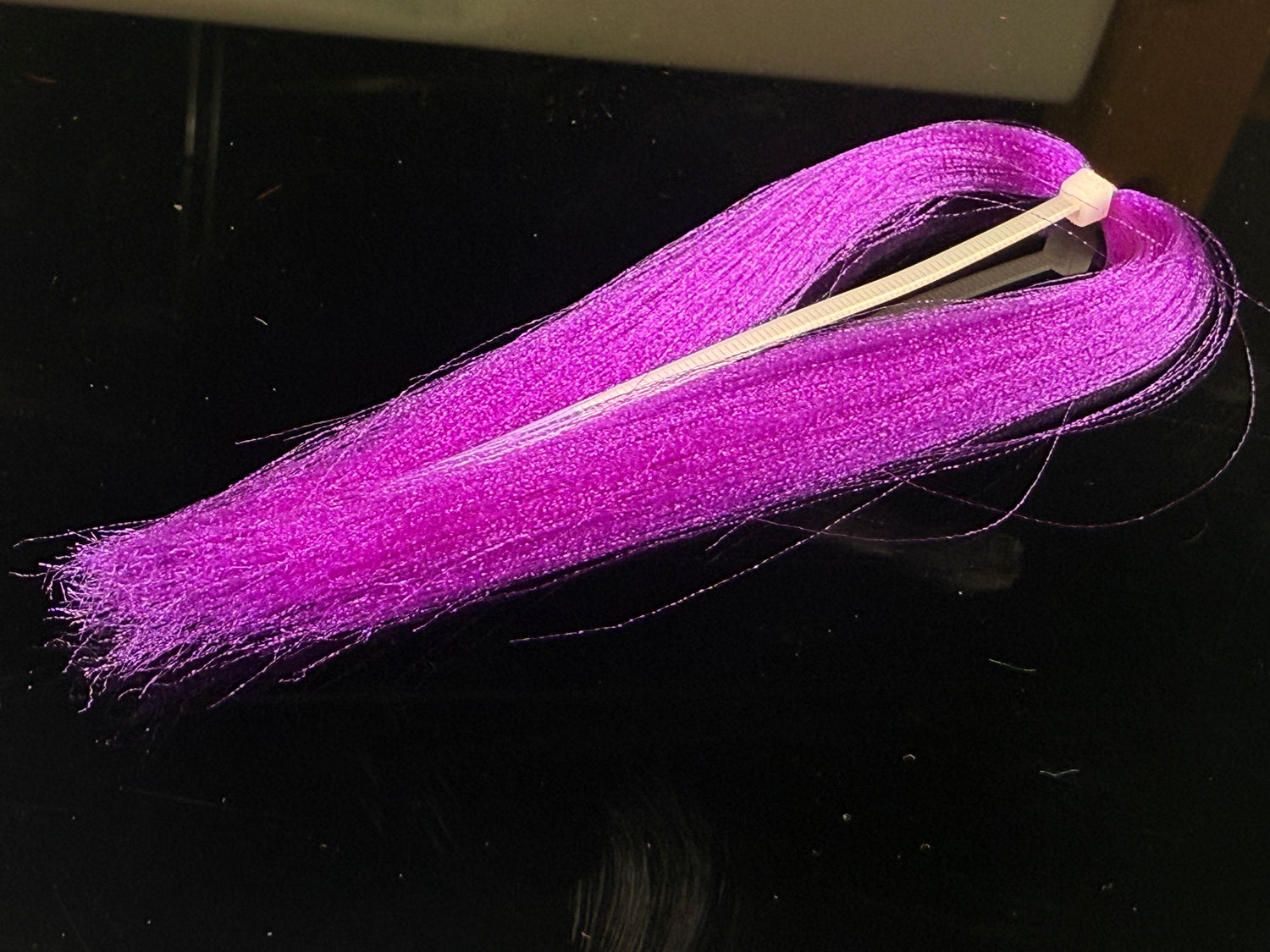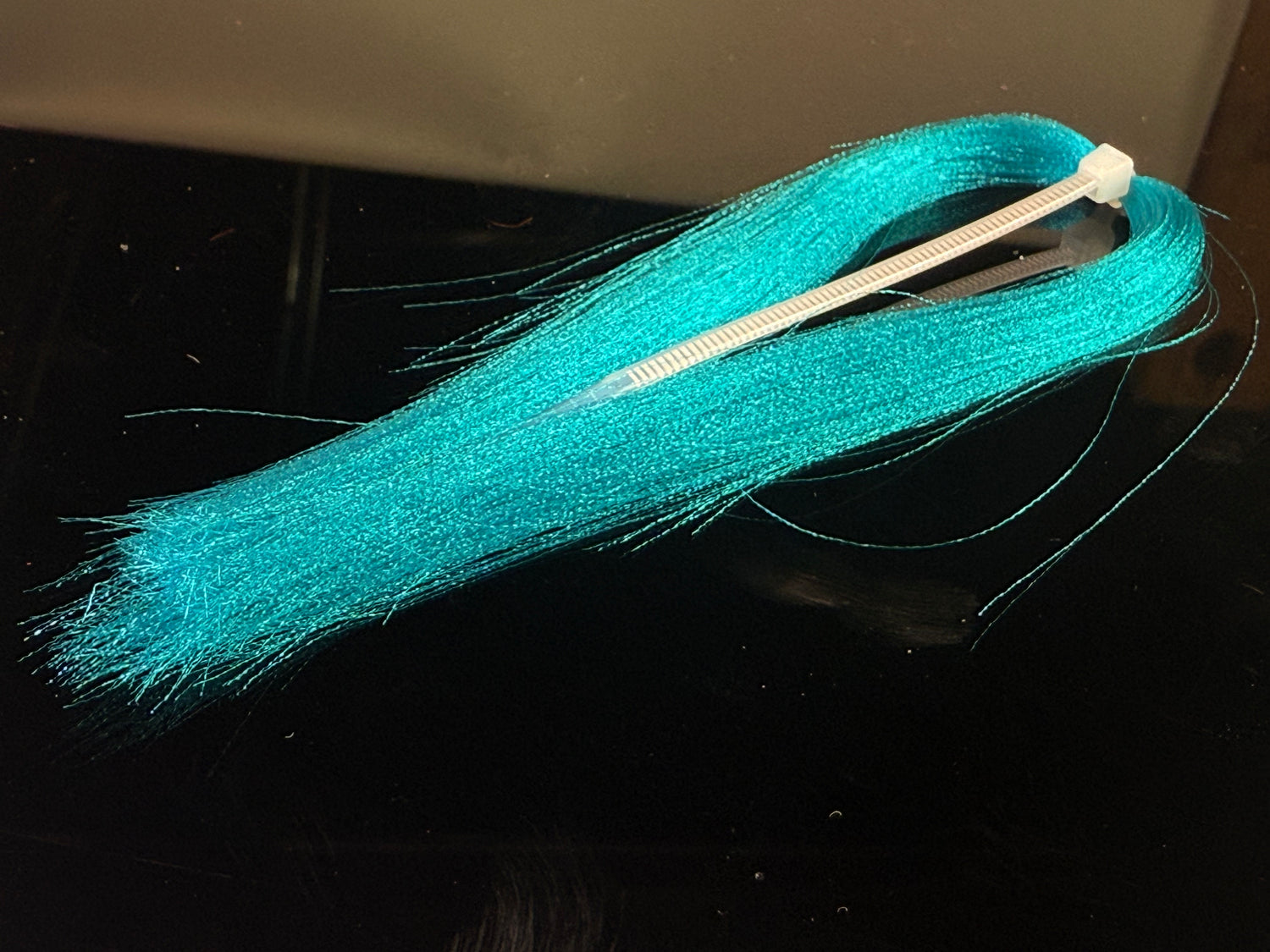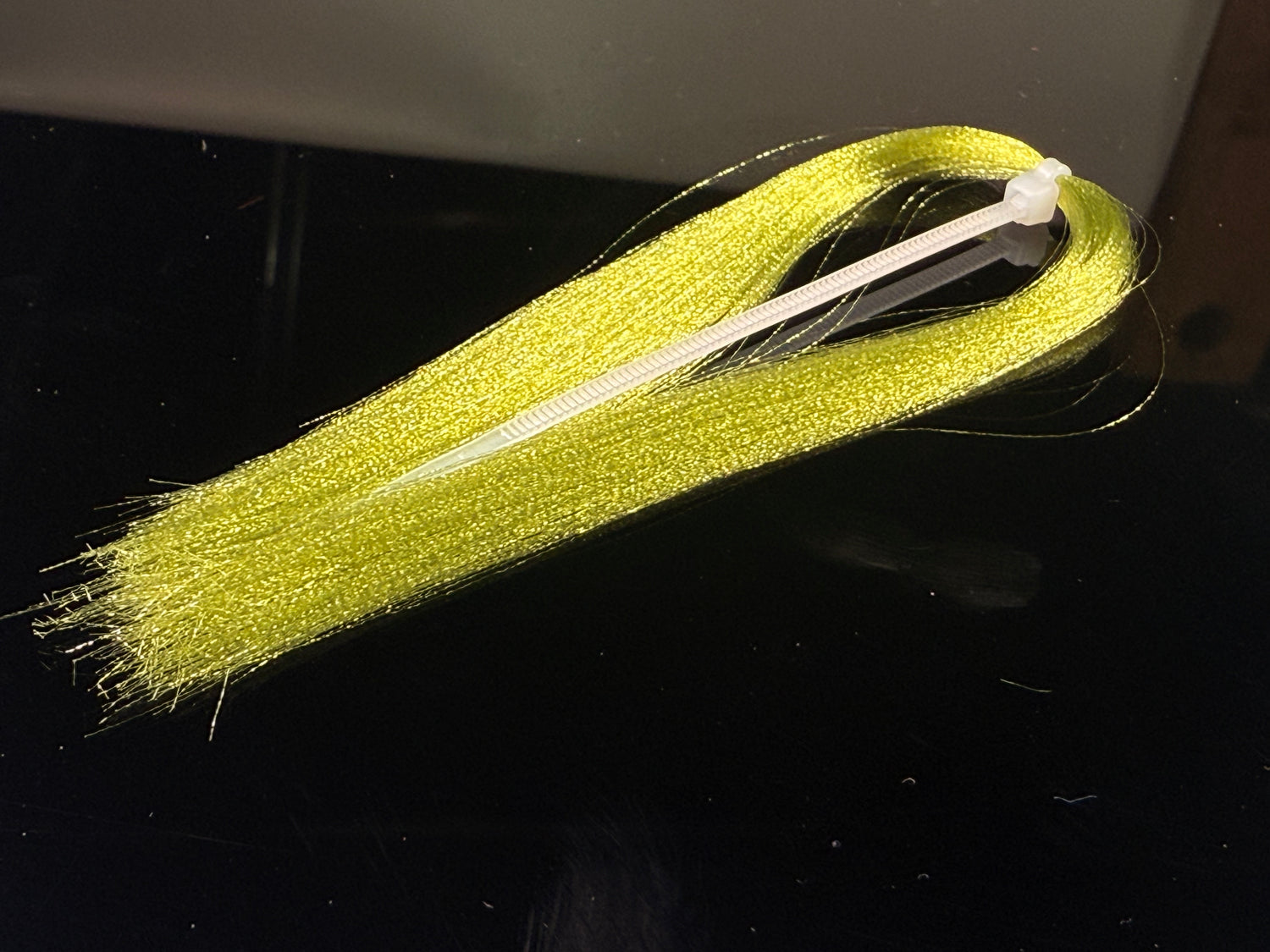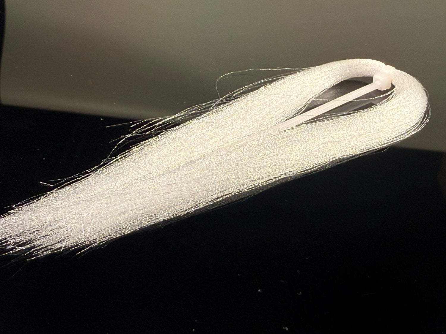Soft fine fibers with a micro crimp wave that sends light in  all directions. Zip tied in the middle  with each side being 4-5" long. This  stuff if ideal for baitfish patterns and is under-utilized by steelhead tiers.