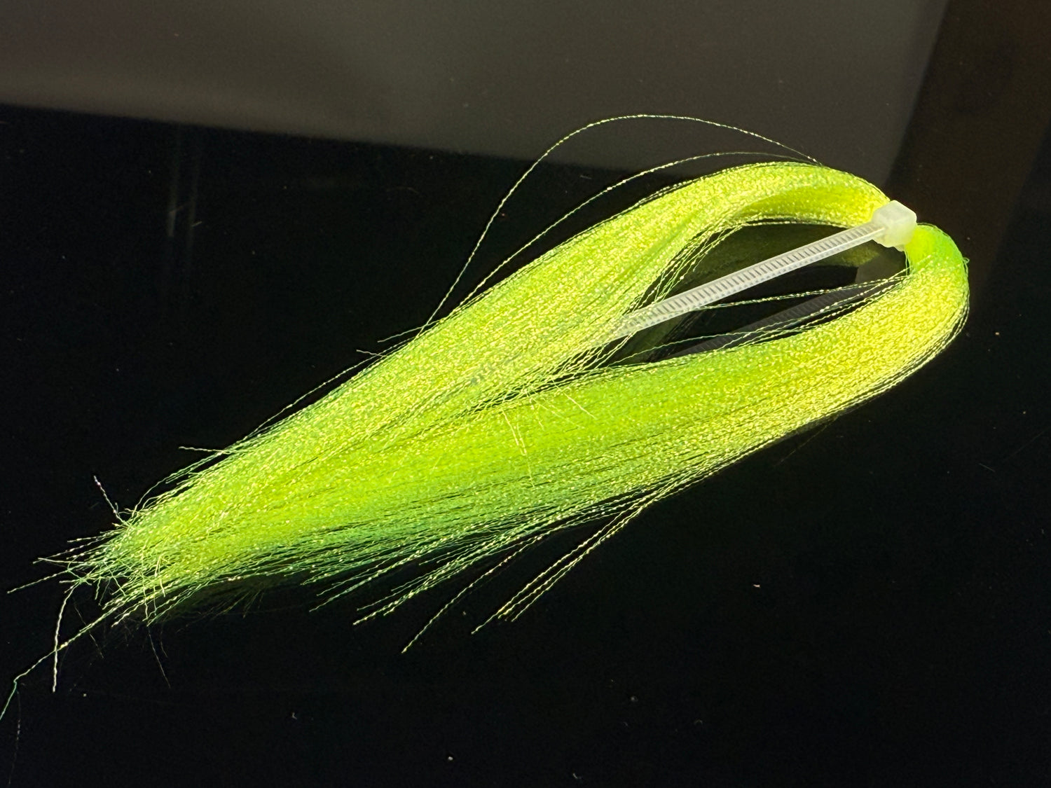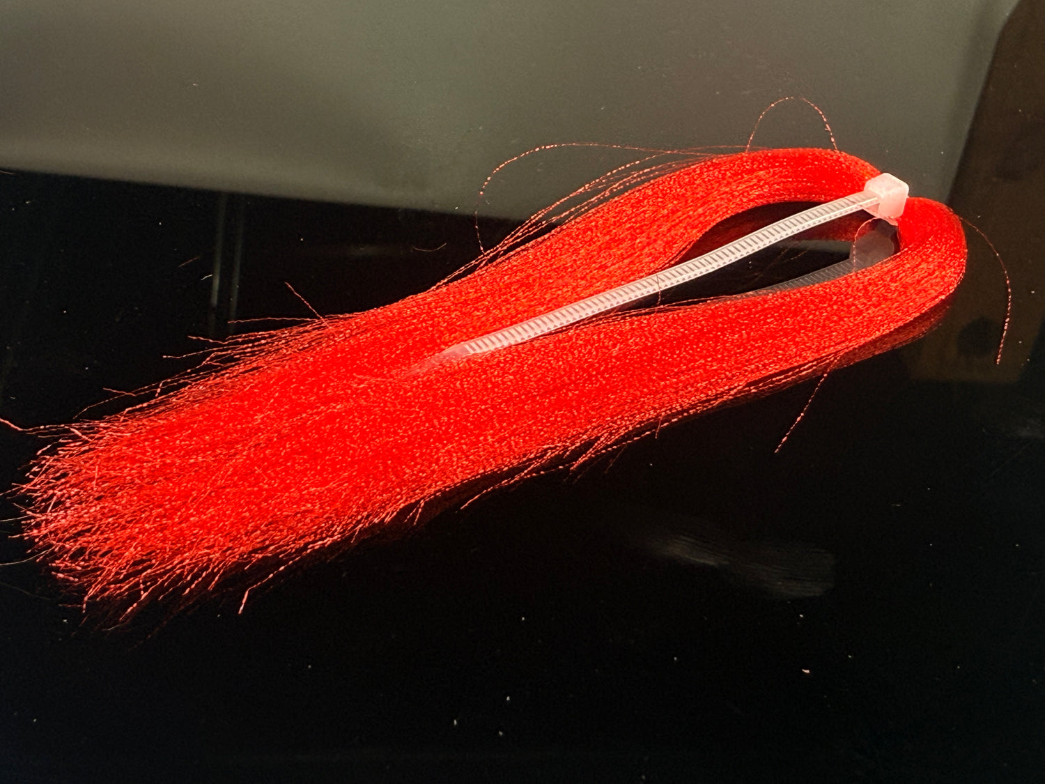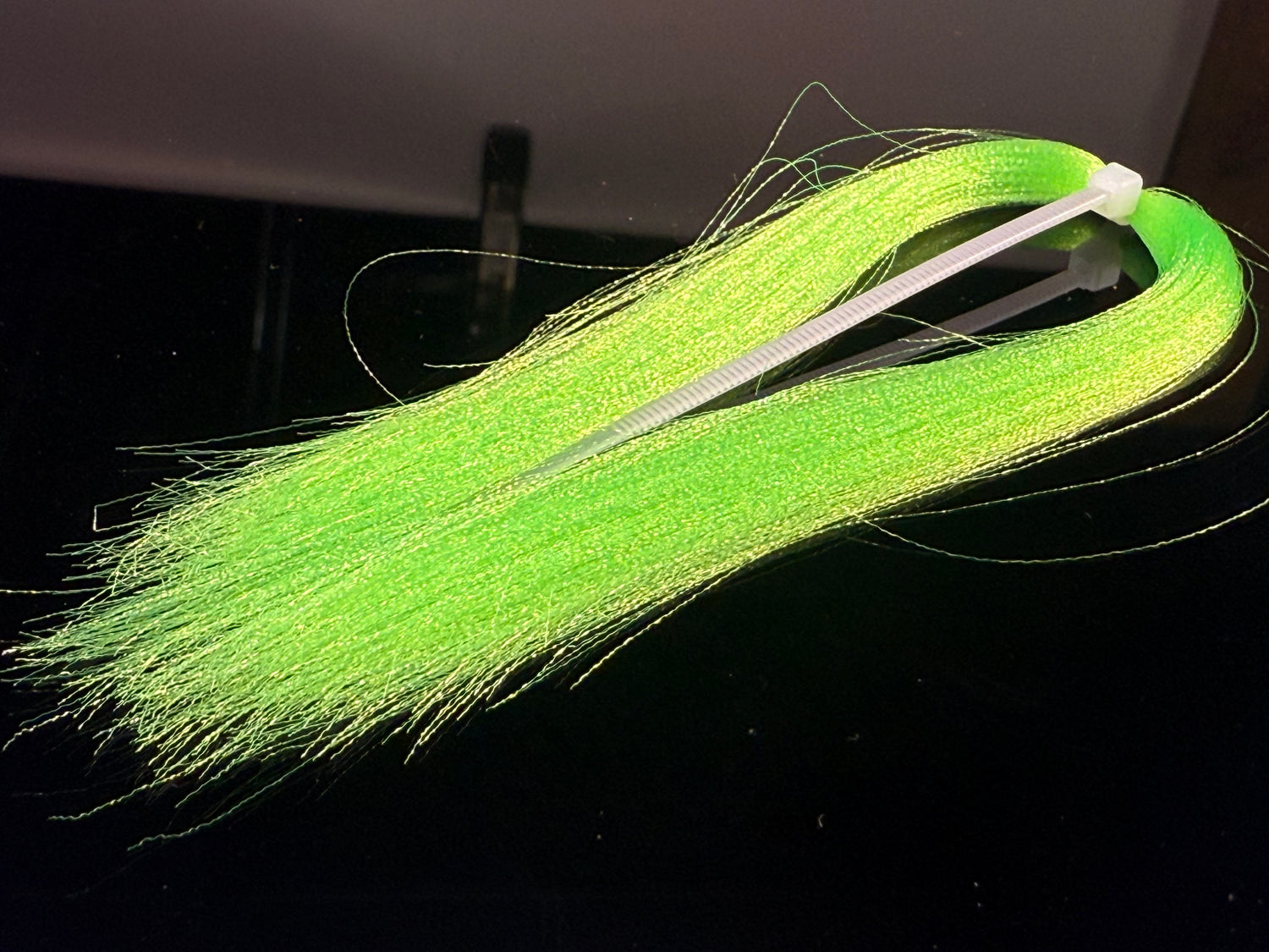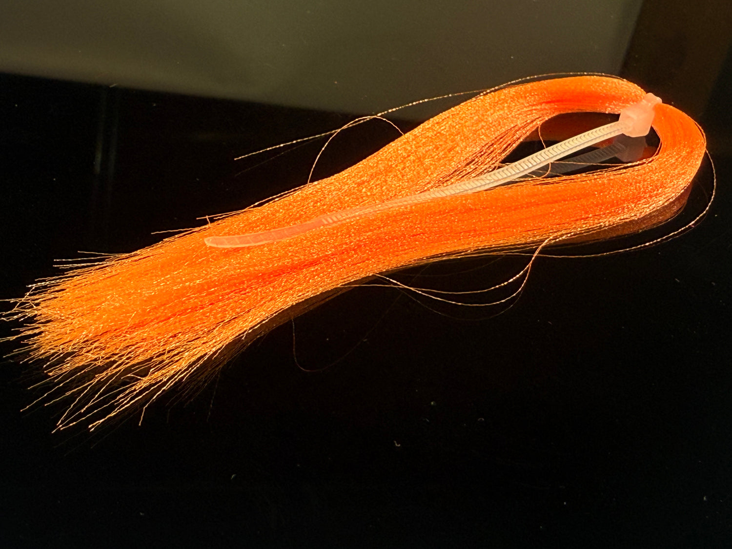 Soft fine fibers with a micro crimp wave that sends light in  all directions. Zip tied in the middle  with each side being 4-5" long. This  stuff if ideal for baitfish patterns and is under-utilized by steelhead tiers.