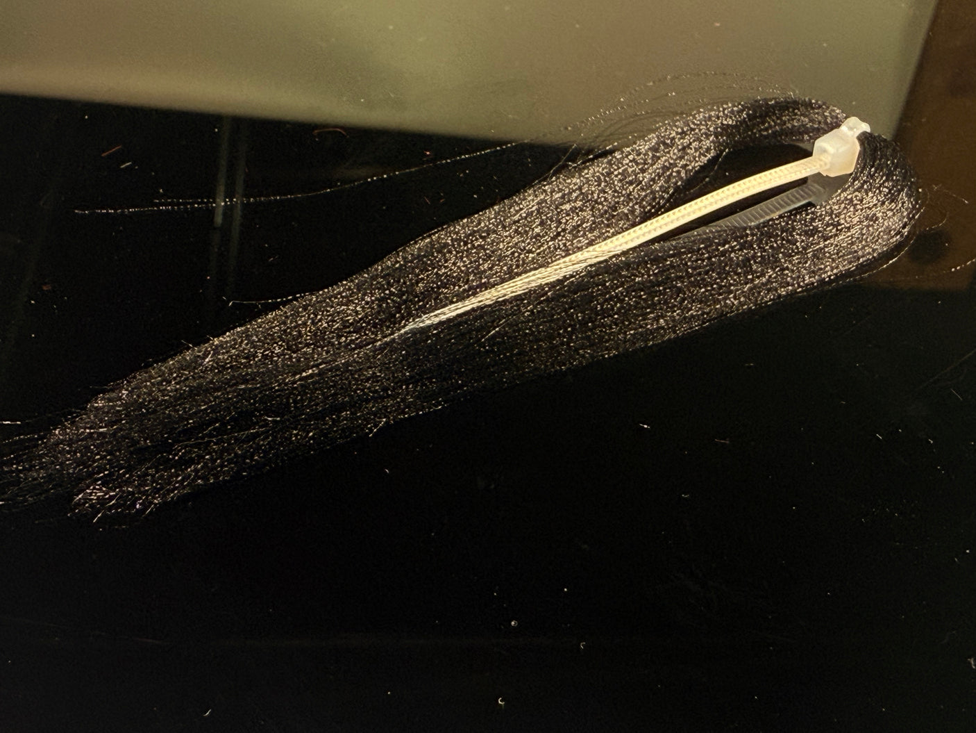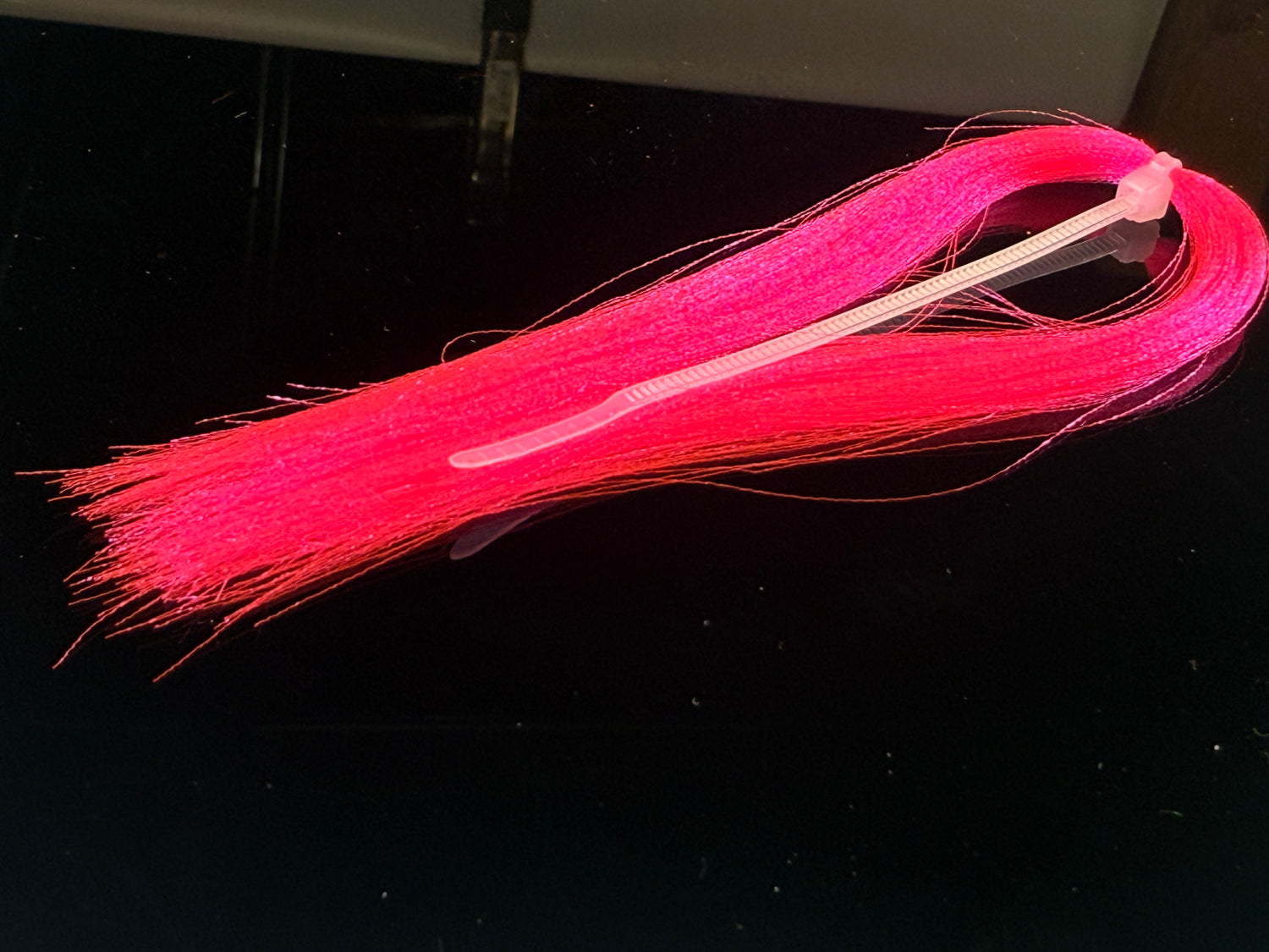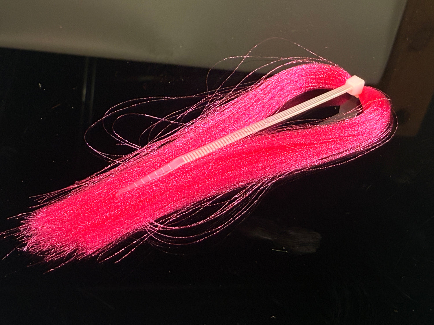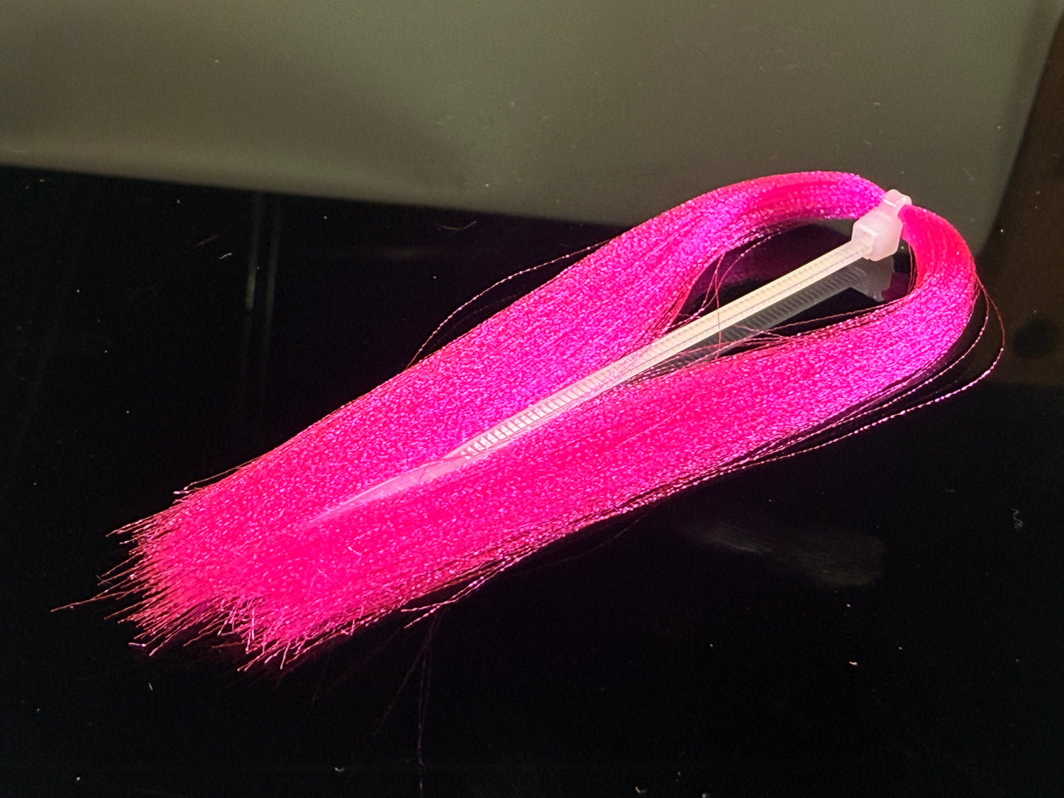 Soft fine fibers with a micro crimp wave that sends light in  all directions. Zip tied in the middle  with each side being 4-5" long. This  stuff if ideal for baitfish patterns and is under-utilized by steelhead tiers.