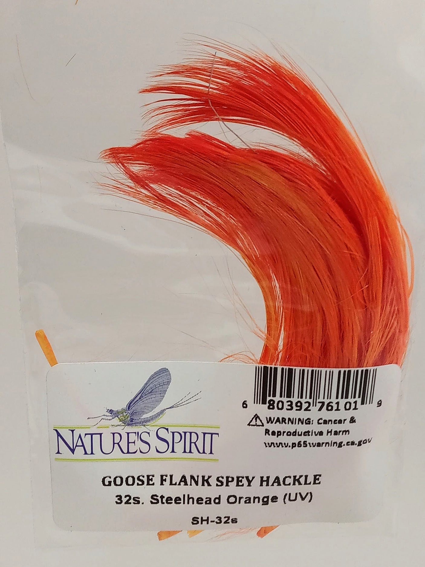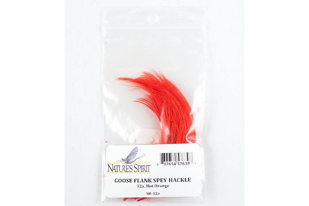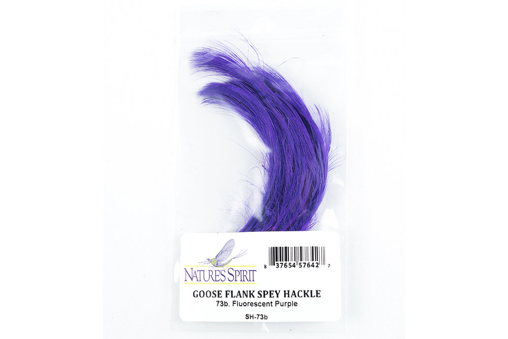 A good substitute for Blue Eared Pheasant (not quite the same but as close as a substitute as you can get). A great material for spey hackle on traditional style flies. If you haven't worked with this material we recommend soaking it in warm water for about thirty minuets before tying with it, it becomes a lot easier to work with.