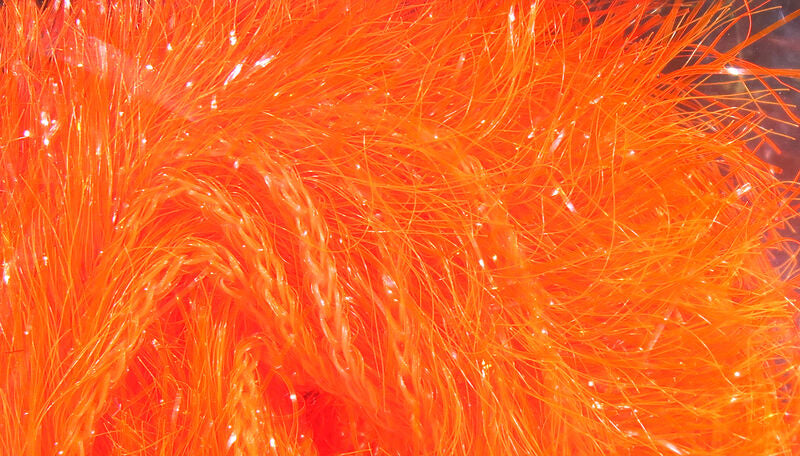 This imitation hackle is one of the best new tying materials to hit the shelves. The very strong fibers are about a half inch long and are only on one side of the "stem", which makes it user friendly and very easy to control. It has action like marabou, and the colors look awesome in the water. It casts and sinks well because it does not absorb water.