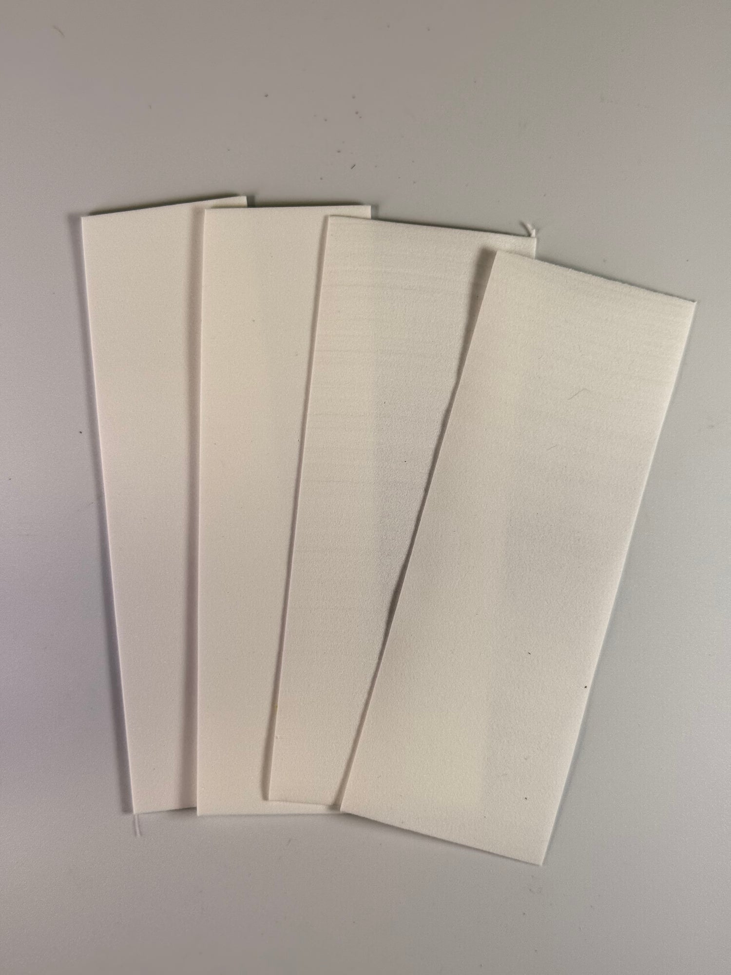 Razor Fly Foam is super thin and great for small flies, floating nymphs, cut wings, and wrapped bodies. Stacked colors can be glued with Super 77 for killer sandwich flies. Each package contains two sheets each of .5mm and 1mm.