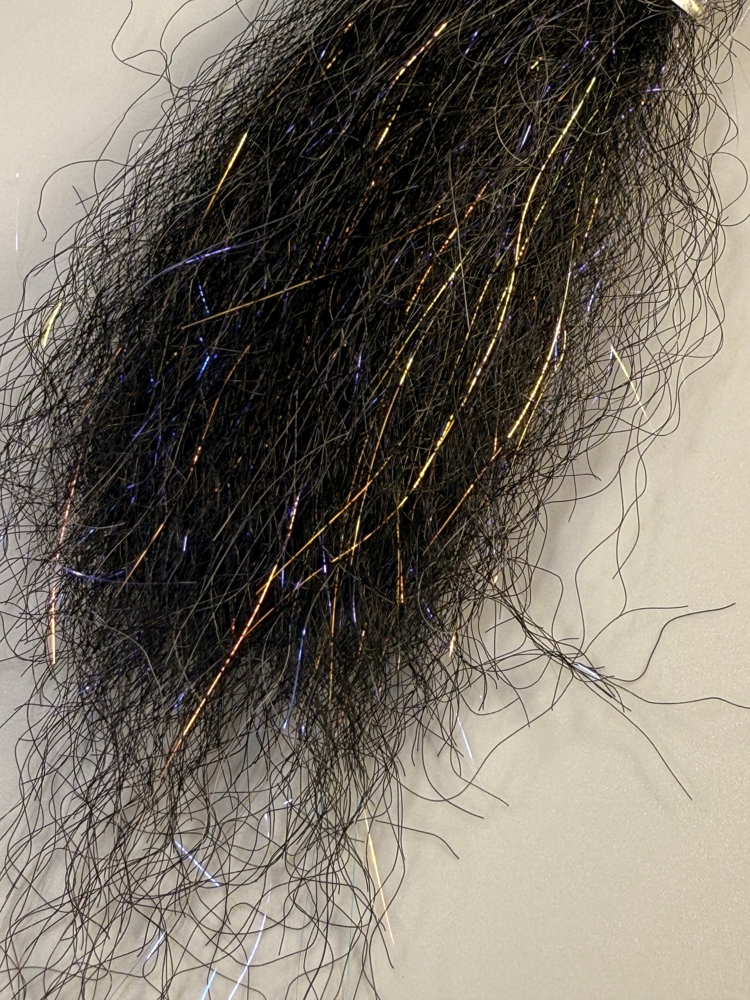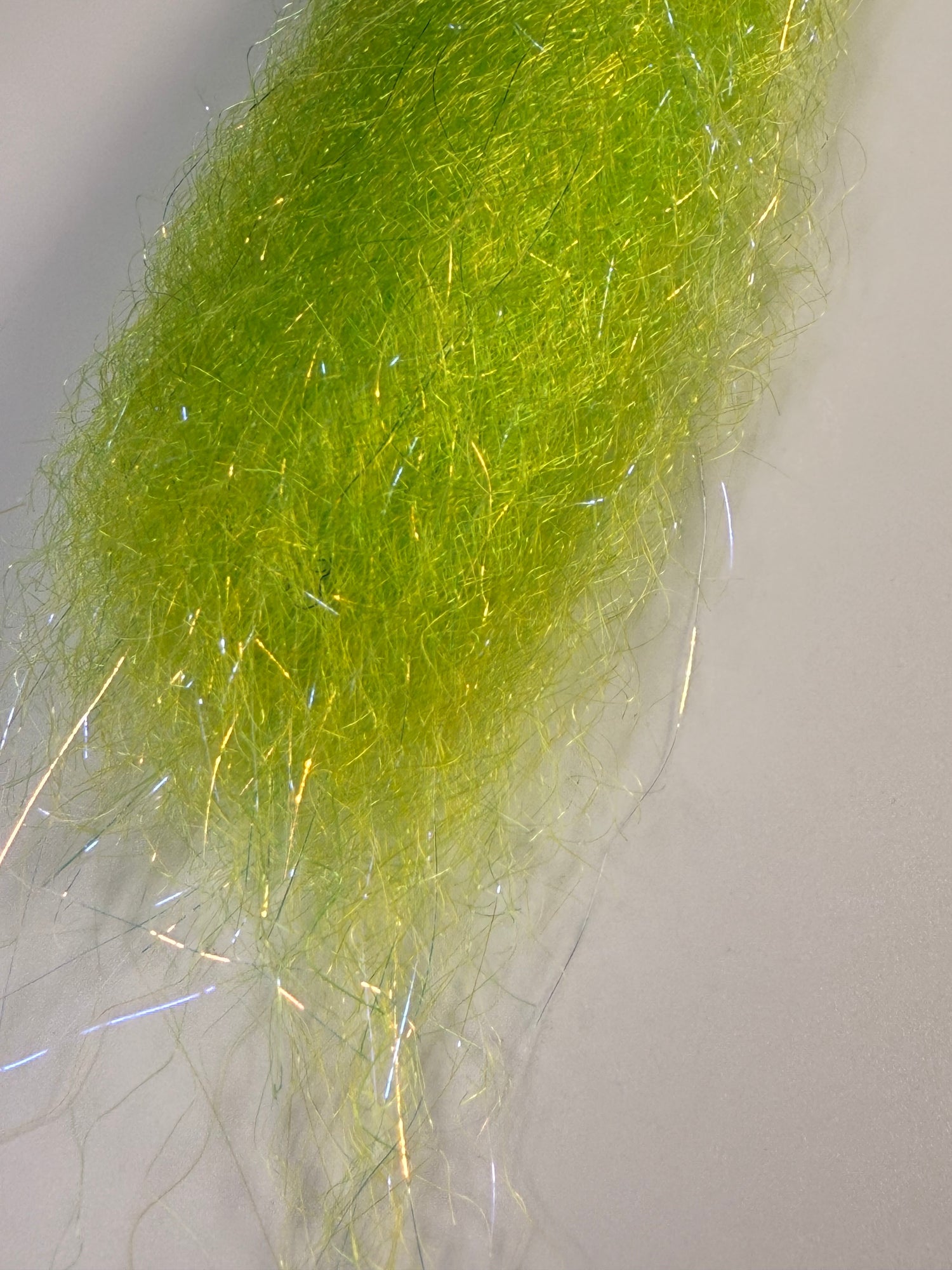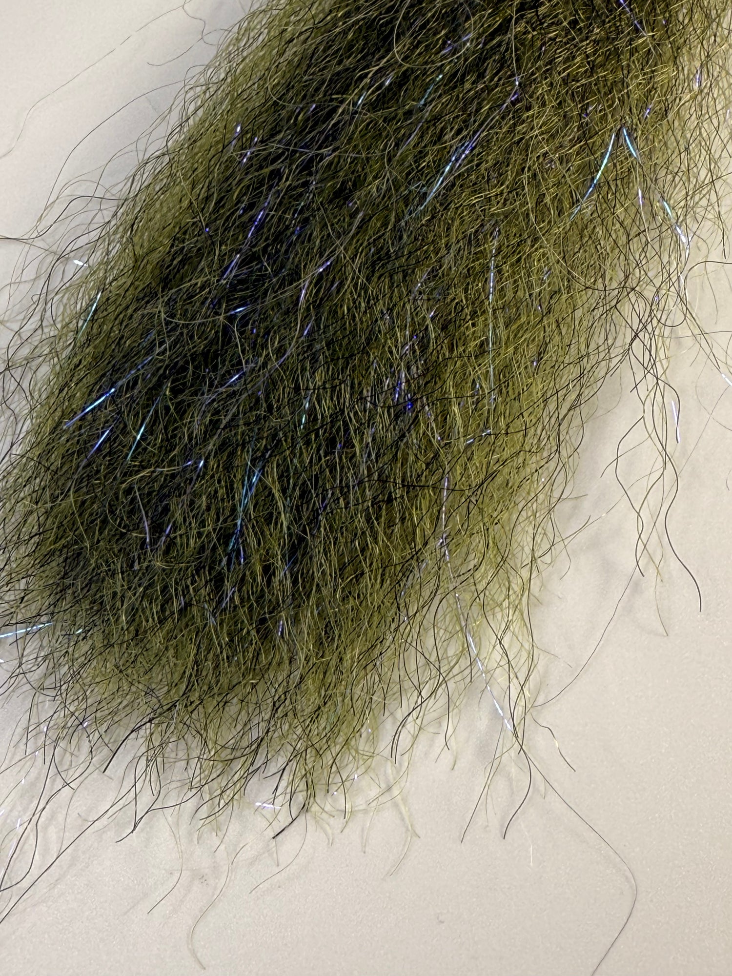 Steve Farrars UV blend is a durable slinky fiber mixed with some angel hair. Easy to work with and looks great in the water. One of the best materials for saltwater patterns around. Easily creates patterns with a little bit of bulk that cast easily. 9" long. Comes in a multitude of unique UV blends.