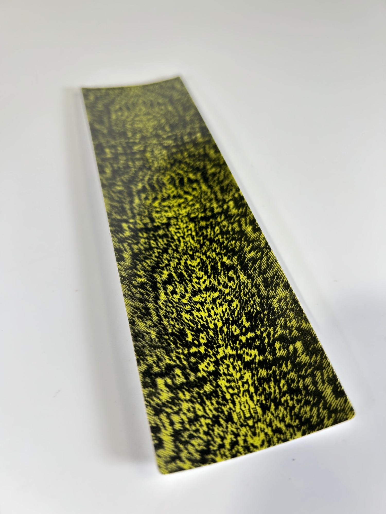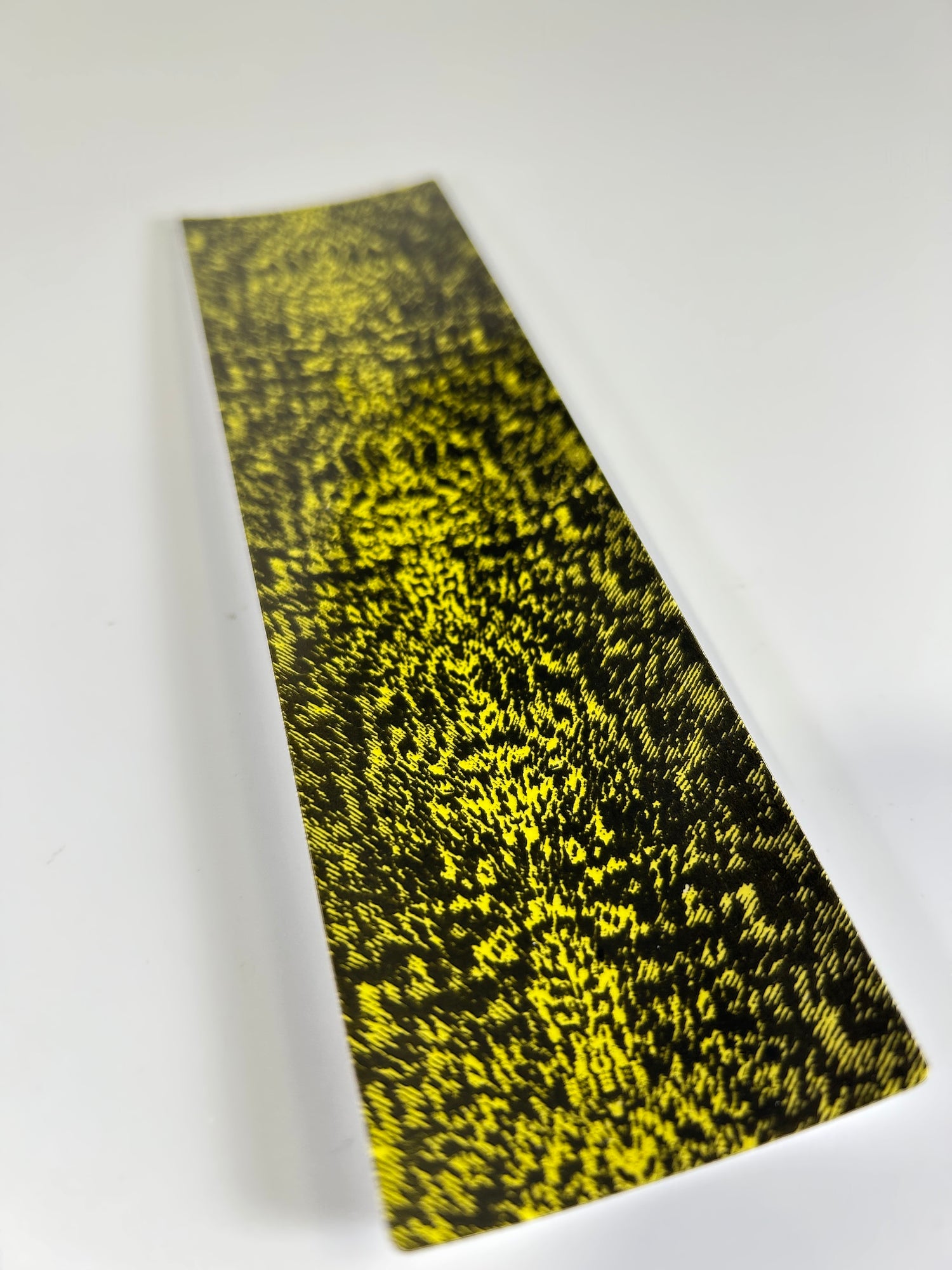 Thin skin is .0004" thick and can be used on flies past size 18. It is stretchable and transluscent with a matte finish on one side and shiny finish on the other. The backing makes it easy to cut to width. Uses include nymph wing cases and backs for scuds, sowbugs, crayfish and shrimp.