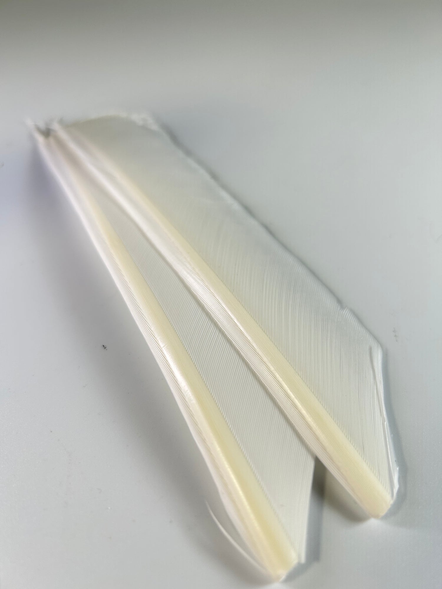 These generously sized, carefully trimmed pieces are an excellent value. Turkey biot quills make very nice translucent bodies. They are generally longer than stripped goose biots and easier to wrap. We use the fibers from both sides of the stem, so there is a lot of material for the money. The colors coordinate very closely with our fleece dubbing products.