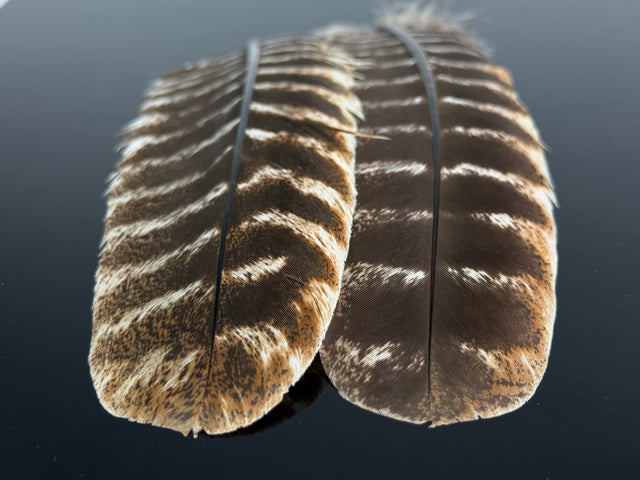 Turkey Quills Barred - Pair is backordered and will ship as soon as it is back in stock.