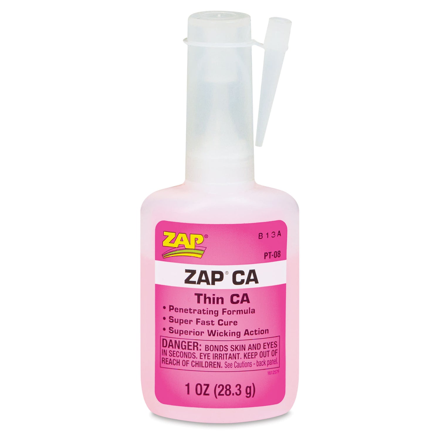 Be ready to bond almost anything with Zap CA Adhesive. This versatile adhesive has a thin, water-like consistency that bonds to most materials, including balsa wood, rubber, and metal, in 1–5 seconds. It can also be used to strengthen fiberglass cloth. Use it for jewelry repair, furniture refinishing, auto detailing, and more.