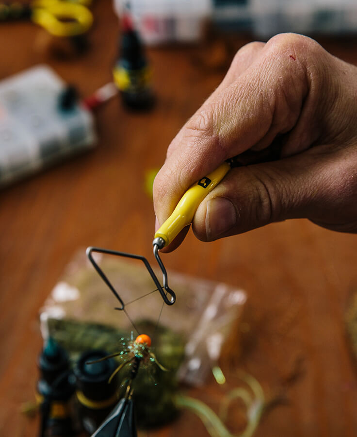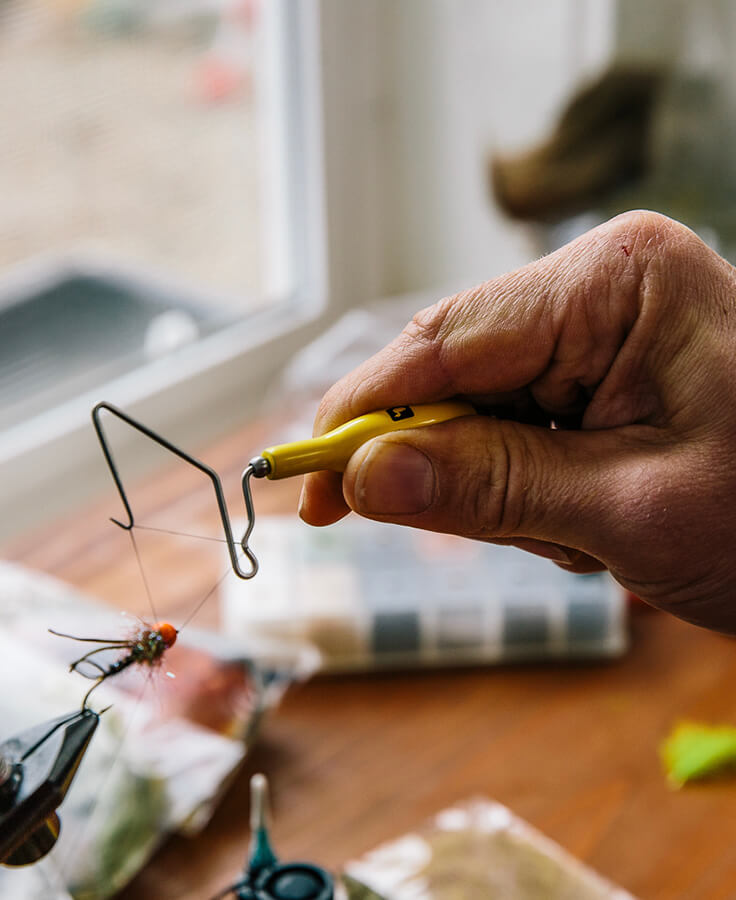 The classic whip finisher with a powder-coated ergonomic body. The base of the tool has been sharpened, so that finishing flies and clipping thread can be accomplished with one single tool.