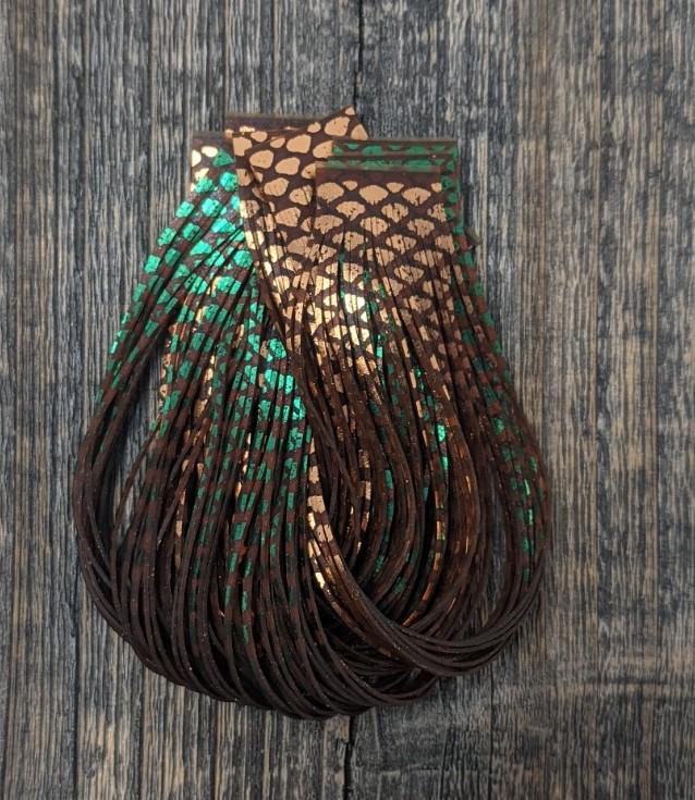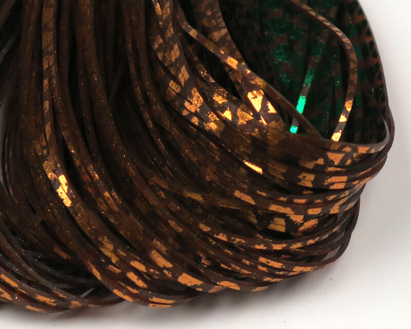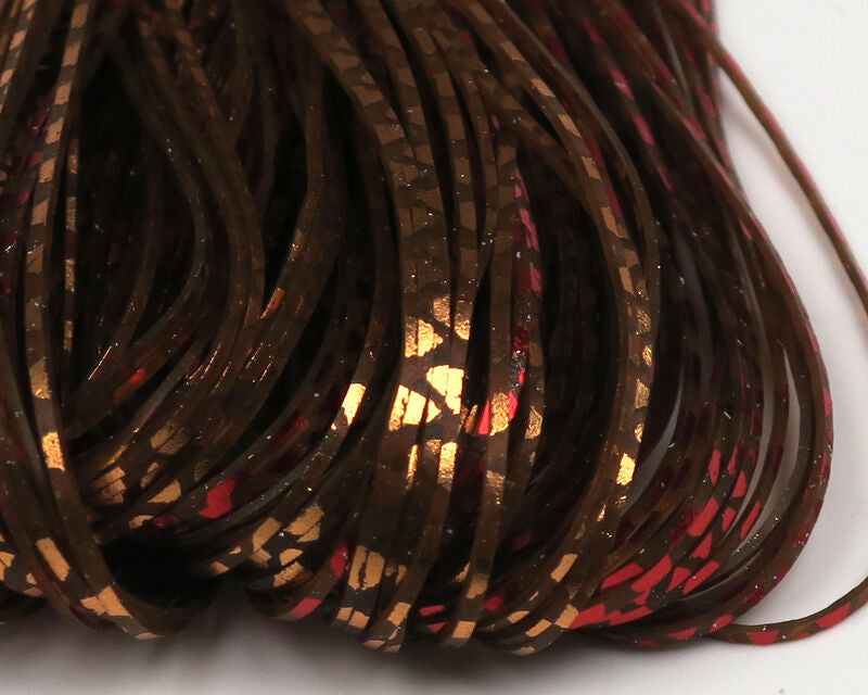 Silicone type rubber legs with added iridescent flash and barred patterning. Adds movement and flash to any streamer or steelhead fly. Micro version of the Foil legs.
