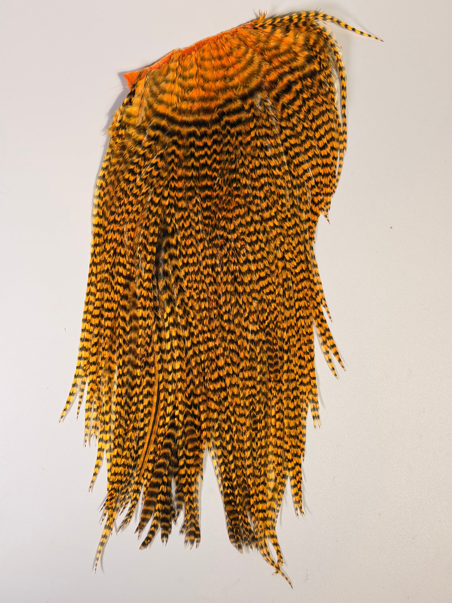 These saddles are great for building high-profile wings, tails, or collars on larger flies, from Catskill-style dries to big deceivers or saltwater streamers. The grizzly pattern adds contrast and realism, making your flies visually striking and effective on the water.