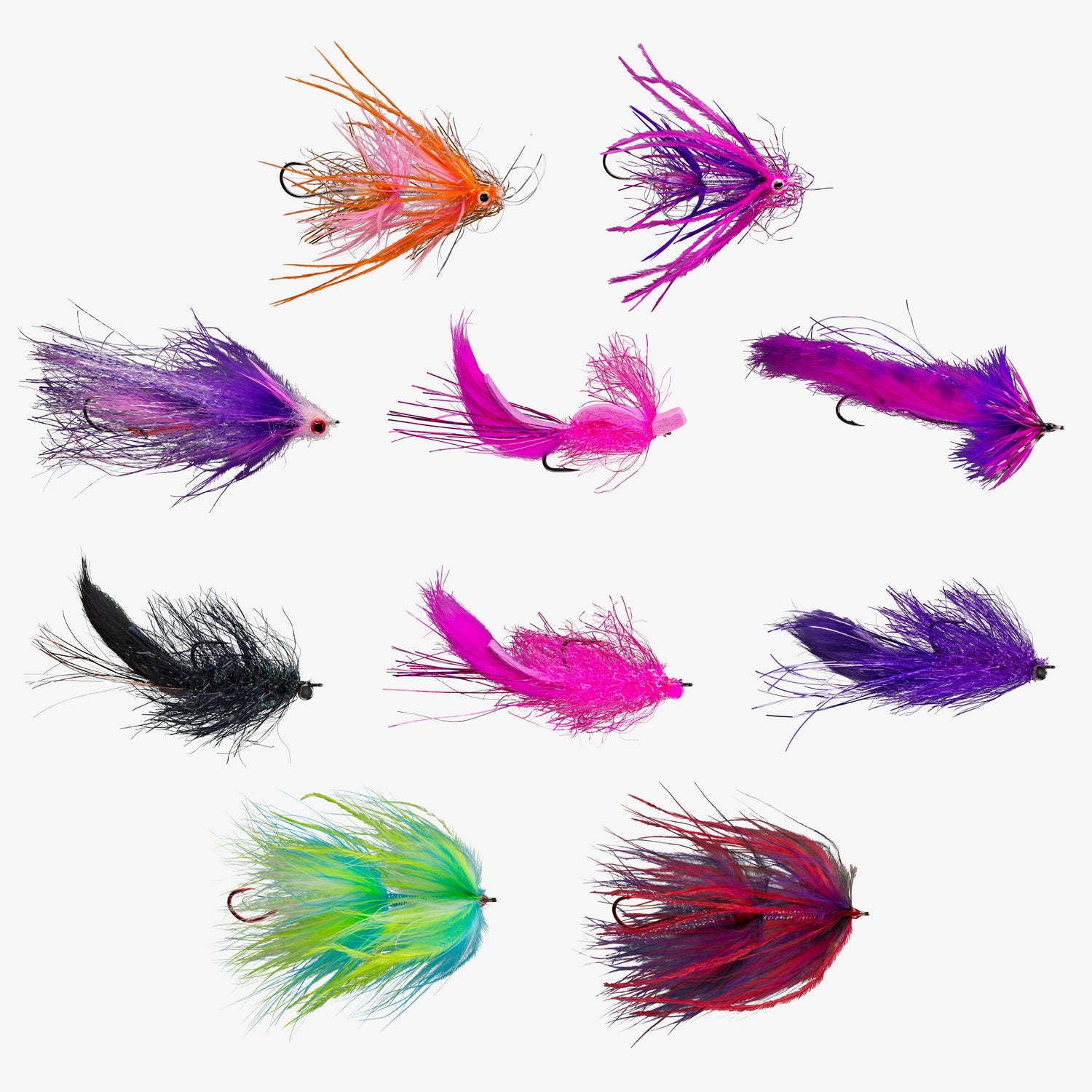 RIO's Alaska Salmon Assortment includes 10 very effective flies for all salmon species likely to be encountered in Alaska. The assortment includes the following: