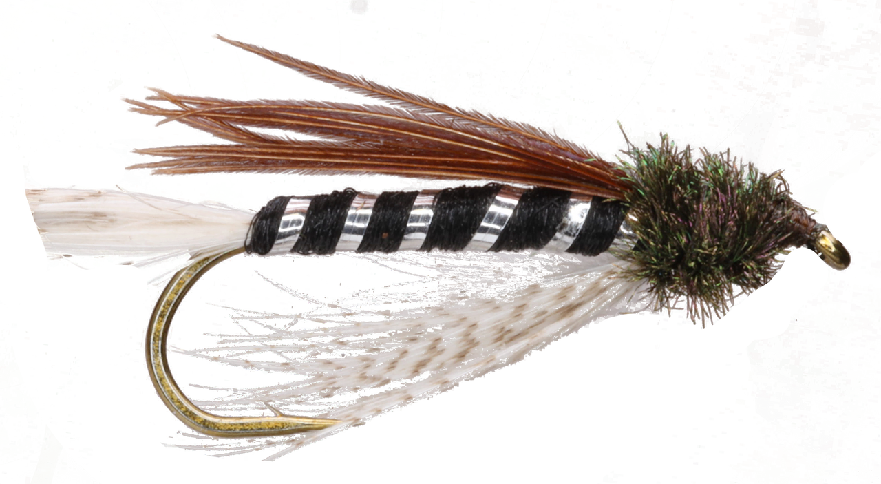 This pattern, named after the late Dr. Donald A. Spratley of Mount Vernon, Washington, is one of the most effective wet fly patterns in British Columbia, particularly in waters with good caddisfly hatches. Mrs. Dorothy Prankard Schracht of Mount Vernon said her husband, the late Dick Prankard, originated the pattern about 1949. She said he called the fly Doc Spratley because the doctor came into the store at the time he was tying it and asked Dick what the name was. Dick replied, “I think I’ll call it the Doc Spratley.” Prankard’s wife tied the fly commercially for several years. Dr Spratley used the pattern in British Columbia. It is still a highly popular pattern wherever large caddisflies hatch.