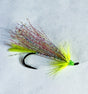 Unweighted for slow pools, inside seams, or beaches. Rainbow krystal flash wing, and chartreuse tail & collar because salmon love flash and they love chartreuse.