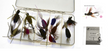 Selection of wake flies for steelhead surface fishing - All neatly stored in our practical clear plastic box.