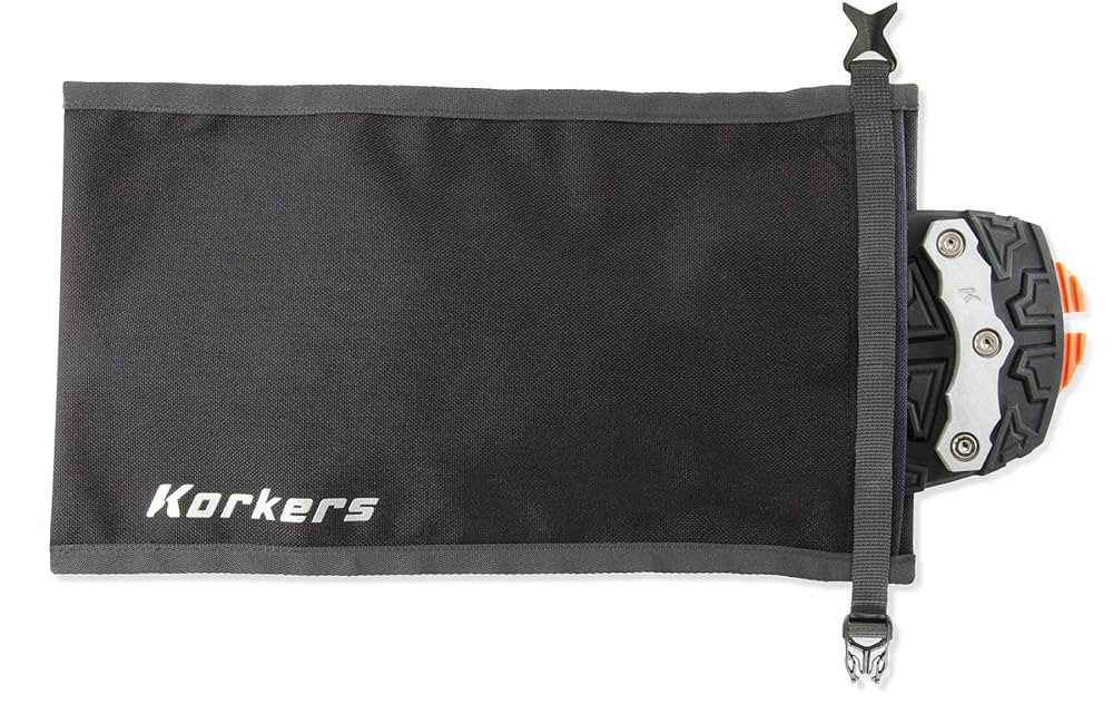 Durability: Tough Cordura™ nylon bag with roll up and buckle closure designed to keep metal sole elements away from other surfaces.