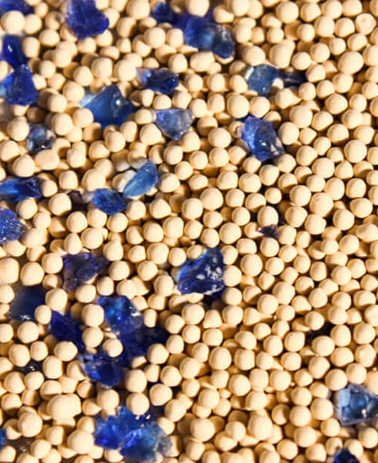 -Blue indicator beads turn pink when it's time to replace