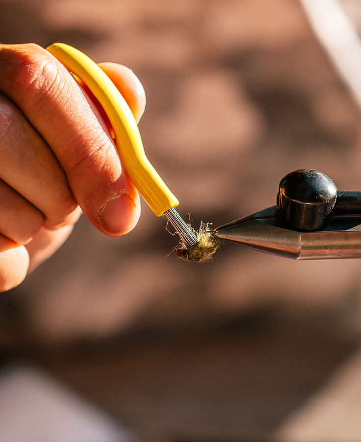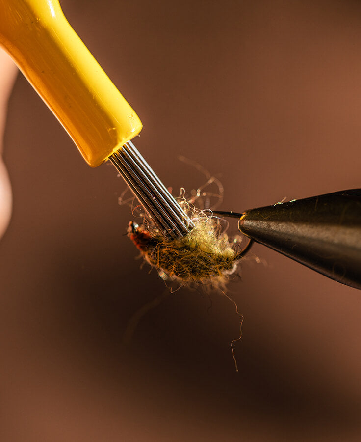 Some flies get better the longer they are fished. The Ergo Dubbing Pick pulls up trapped fibers to get flies up to speed right away. The ergonomic handle is powder-coated in iconic Loon yellow so it won't get lost on your tying bench.