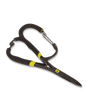 The ultimate mitten clamp, thoughtfully designed from the tips to the jaws to the handle. A carabiner handle means you can store anywhere and the tight angles and engineered shape accommodate all fly sizes, allow for easy hook removal, and can crimp even the heaviest of barbs. Oversized thumb and finger holes accommodate large or gloved hands, and the compact cutting surface easily clips light or heavy leader.