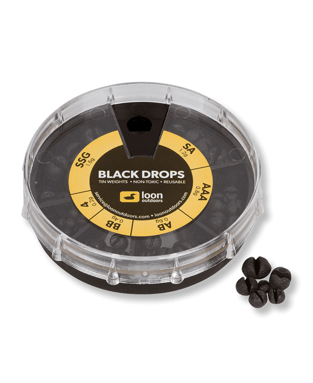 Loon Drops Split Shot - Black Drop / 4 Skinny Water is backordered and will ship as soon as it is back in stock.