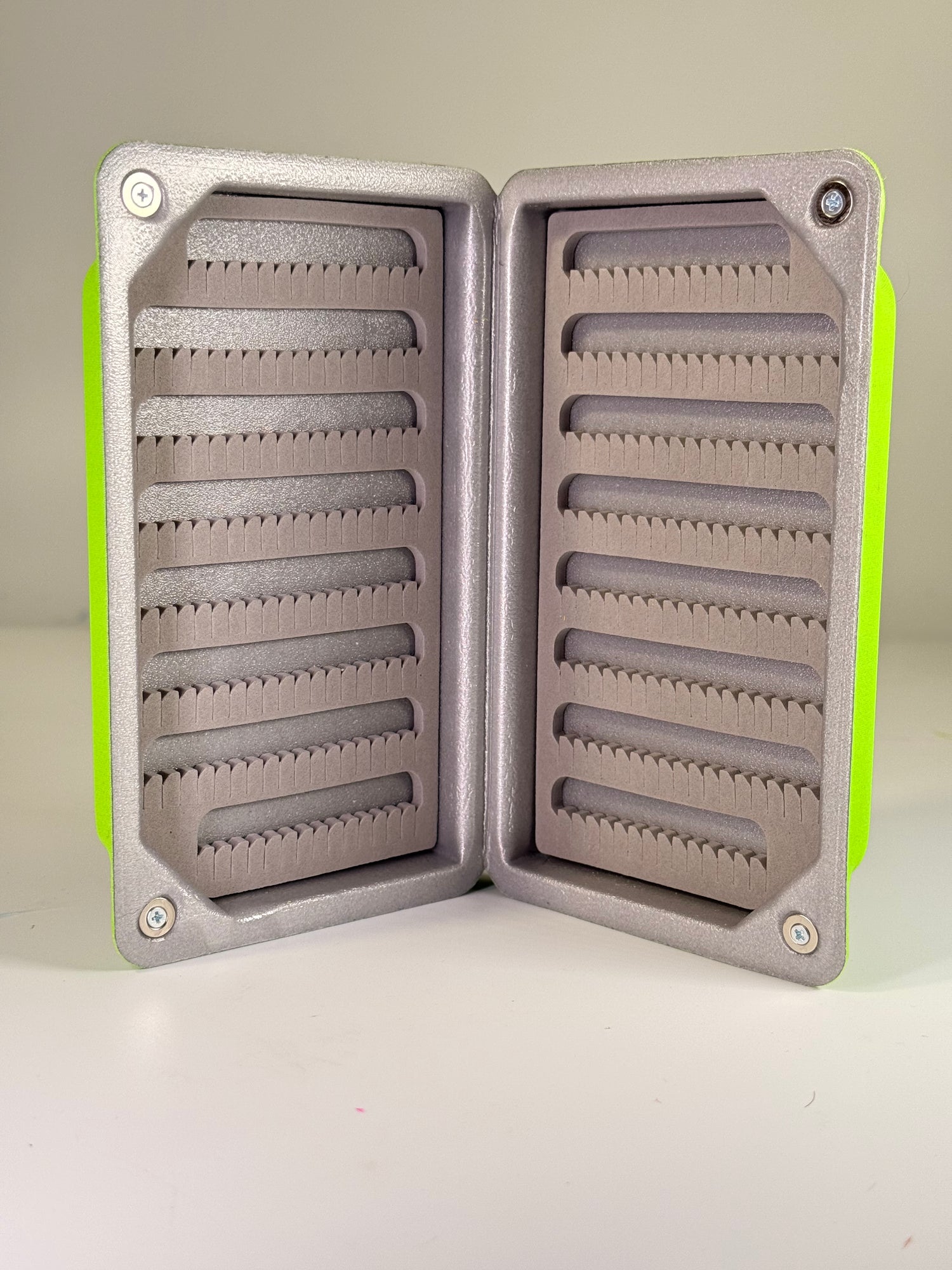 Super lightweight foam fly box with magnetic closure. Slit foam design for easy organization.