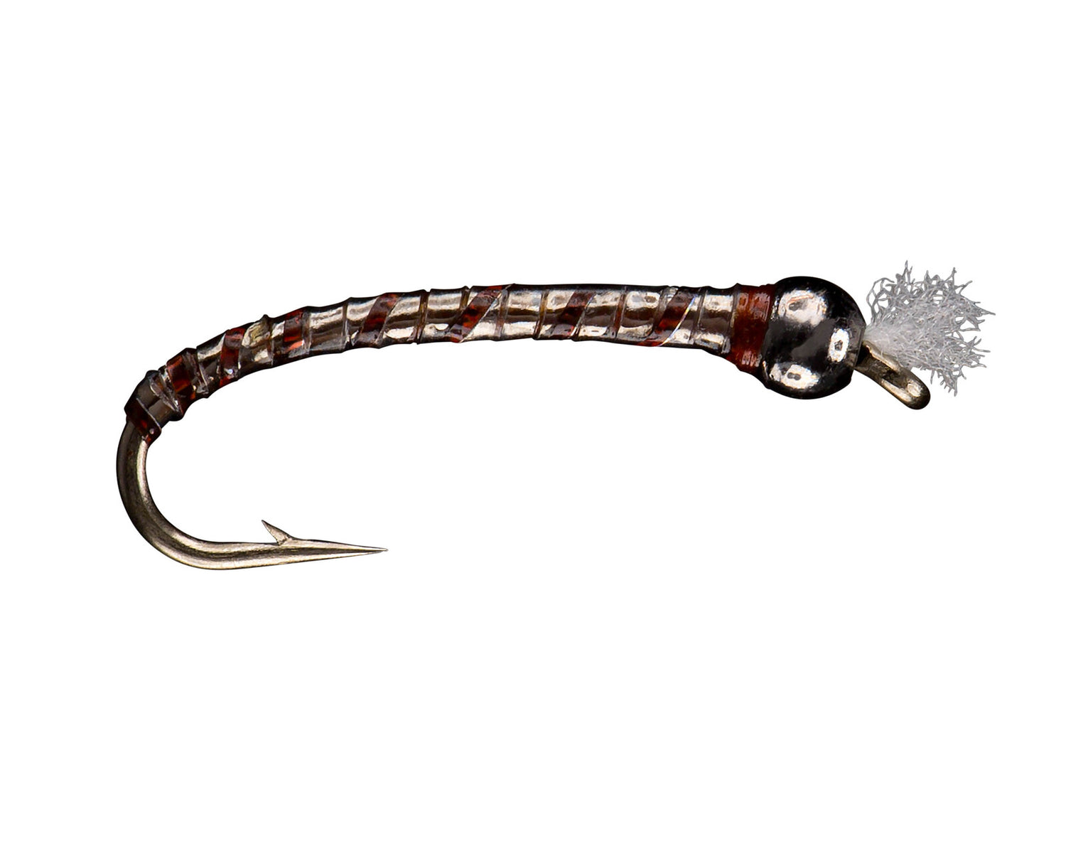 The fly pattern everyone needs to have in their stillwater box. This imitates the most common species of chironomid you see during peak season on most of the interior lakes in BC. Commonly fished static, under an indicator as to control the depth in which you'd like to fish this fly, which is typically near the bottom. Find feeding fish, set it and wait for that sweet little bobber to drop! For a little movement, a real slow figure 8 retrieve or the odd short and fast twitch can make all the difference to stand out from the crowd. Tied with either a maroon, black, brown or red rib, tie one of these on for spring stillwater season for trophy Rainbow trout.
