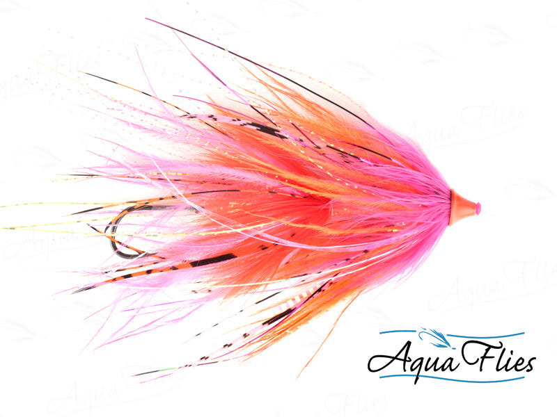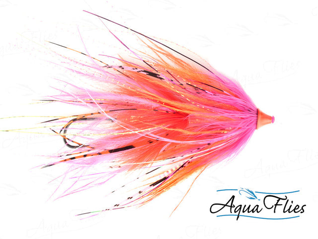 A large profile unweighted intruder with lots of flash and wiggle. Developed in the tidewater of the Kanektok River, and proven everywhere you can cast to Chinook near the ocean.