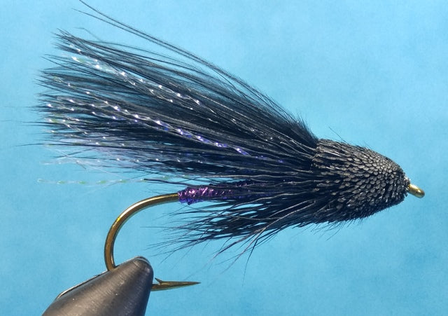 Marabou wing with a slight accent of flash topped off with a spun deer hair head shaped closely similar to that of a Sculpin. Skate this fly on or near the surface or fish it on a sink-tip.