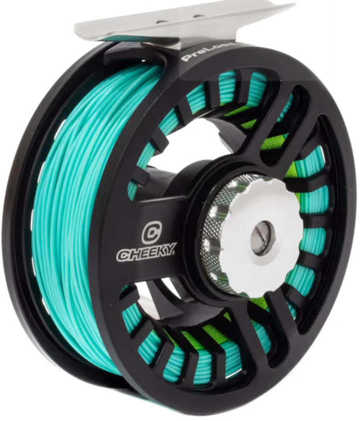 What could be easier? The aptly-named Cheeky® PreLoad Fly Reel comes to you already spooled up and ready to fish; just lock onto your favorite rod, string up, tie on a fly, and cast! And of course, Cheeky has the performance aspect covered: this is a quality large-arbor reel with diecast frame and body, quick-change spool with B2 Backing Channel, pre-loaded with perfectly calibrated backing, fly line and leader. Lightweight and durable, it features fully machined CNC componentry, plus a super-smooth alternating-disc drag with more power than you'll ever need. This fun-to-fish reel comes pre-loaded with abrasion-resistant 20 lb. test backing, premium 90'L weight-forward floating fly line, and a precision 9'L loop-to-loop tapered leader. Easy left/right conversion; includes custom reel case.