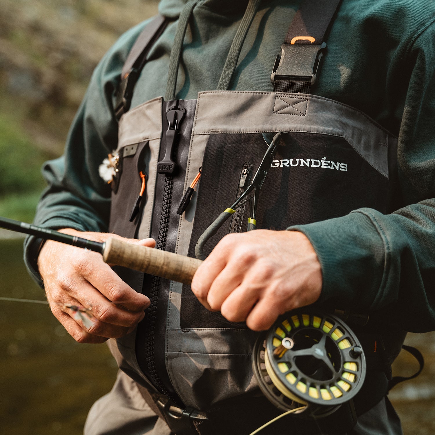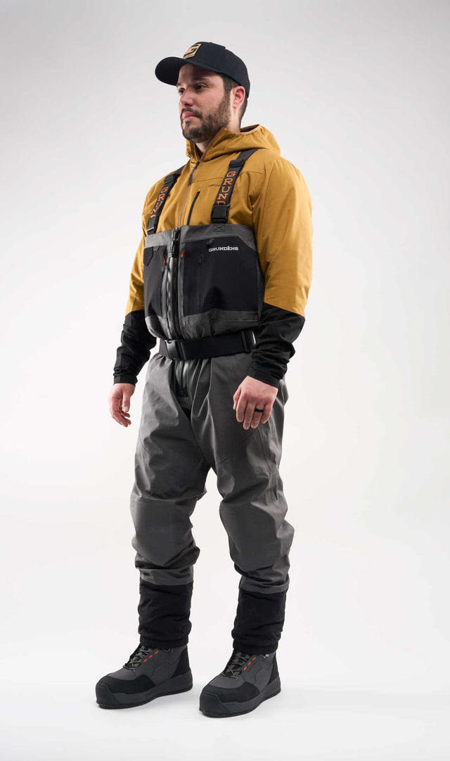 Building on the legacy of ruggedness and durability in our best-in-class Vector Wader, the Vector Zip Stockingfoot Wader enhances your in-water fishing experience with a fully submersible zipper entry wading system and patent pending fishing features. Continuing with our industry-best ultra-dense microfiber 4-layer waterproof/breathable shell, our Vector Wading Collection delivers premium abrasion and puncture resistance with an outstanding 30K+ waterproof rating so that you can fish harder and adventure further both in and out of water. Like all Grundéns waders, our proprietary wading mobility patterning provides ease of movement when navigating your river of choice, plus the addition of molded-in knee pads and abrasion resistant stretch gravel guards enhance the rugged durability of this wader. Our patent pending HAULER™ POCKET is a water-resistant rear pocket system that allows for full 360° storage of fly boxes, personal gear, and of course, a couple beers to quench your thirst on the river. Additional fishing-focused pocket features like welded tippet pockets with laser cut holes allow you to easily rig up on a moment’s notice. Complete with anatomically shaped, size specific, warming neoprene stockingfeet, the Vector Zip Stockingfoot Wader offers an incredible wading experience whether you’re a 200+ day a year fishing guide or a passionate angler looking to upgrade your wading package with a rugged, durable wader.