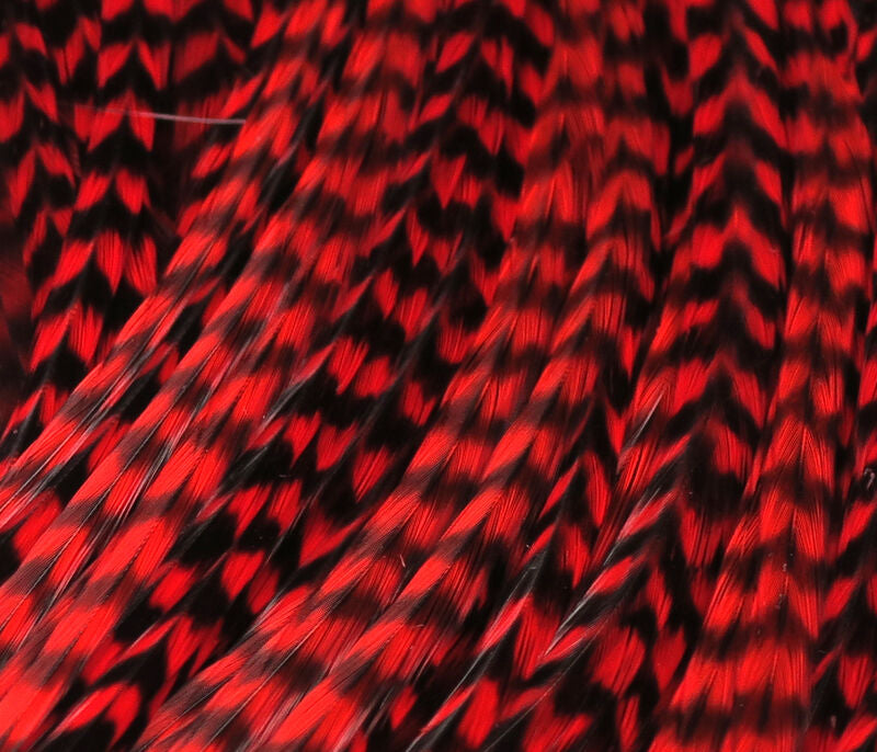 The Half Grizzly Saddle are long skinny feathers perfect for building big predatory flies. Whether it’s a squid pattern, a Steelhead intruder fly or long feeler feathers on a Tarpon fly, these feathers are a pleasure to tie with. Can also use these on large dry fly patterns.