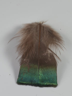 Ocellated turkey body feathers offer a stunning mix of soft, mottled fibers with naturally iridescent highlights—perfect for adding depth, movement, and subtle shimmer to a wide range of flies. Their soft, webby structure makes them ideal for collars, wings, and throats on steelhead and salmon flies, as well as for shoulders and accent feathers on articulated streamers and classic patterns.